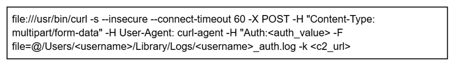 All passwords entered in the prompt are logged to ~/Library/Logs/keybagd_events.log. The malware then creates a file at ~/Library/Logs/ to store the verified password in plain text. This file is subsequently uploaded to a C2 URL using curl.